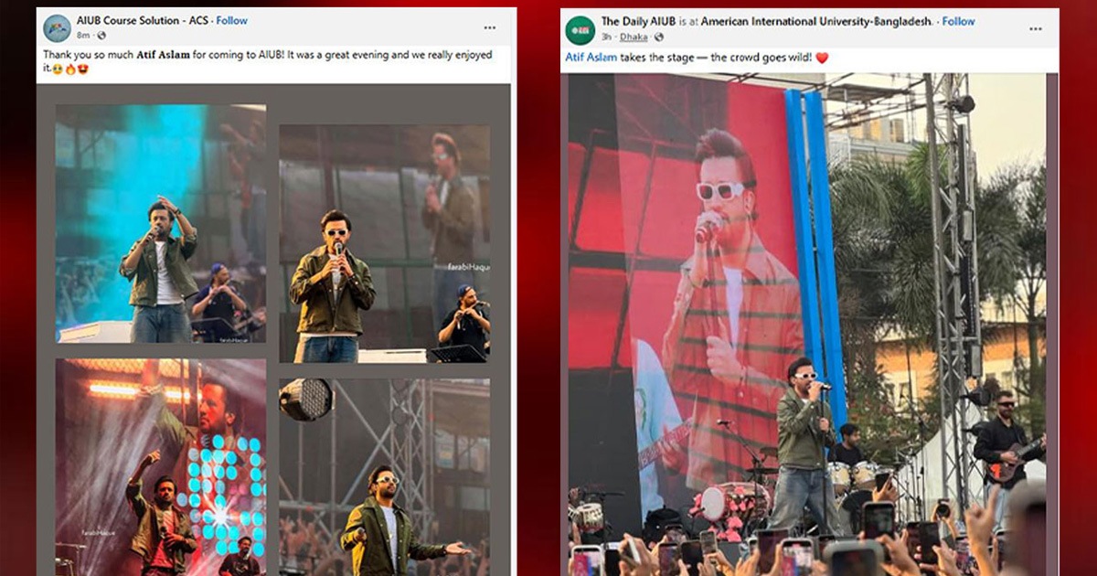 এরপর আজ ১৮ ডিসেম্বর (বৃহস্পতিবার) রাজধানীর বসুন্ধরায় অবস্থিত আমেরিকান ইন্টারন্যাশনাল ইউনিভার্সিটি-বাংলাদেশ (AIUB) ক্যাম্পাসে পারফর্ম করার খবর পাওয়া গেছে। বিশ্ববিদ্যালয়ের নিজস্ব মাঠে আয়োজিত এই কনসার্টের নাম দেওয়া হয়েছে ‘মিউজিক বিয়ন্ড বাউন্ডারিস’। দুপুর ২টা থেকে শুরু হওয়া এই কনসার্টে আতিফের সঙ্গে বাংলাদেশের জনপ্রিয় দুই শিল্পী মিনার রহমান ও প্রীতম হাসানও অংশ নিয়েছেন। তবে বিশ্ববিদ্যালয়ের বর্তমান শিক্ষার্থী, শিক্ষক এবং অ্যালামনাই ছাড়া বাইরের কেউ সেখানে প্রবেশের সুযোগ পাননি। এমনকি নিরাপত্তা ও ভিড় এড়াতে আতিফের অংশগ্রহণের বিষয়টি অনেকটা গোপনই রাখা হয়েছিল।